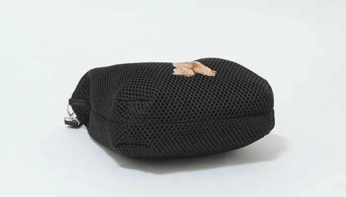 本体は柔らかく軽量なポリエステルメッシュ生地。メッシュの軽やかさがスタイリングにほどよい抜け感を与えてくれます。アニマル刺繍がシンプルなバッグにアクセントを効かせ、愛らしい表情が持っているだけだ笑顔にしてくれるデザインです。