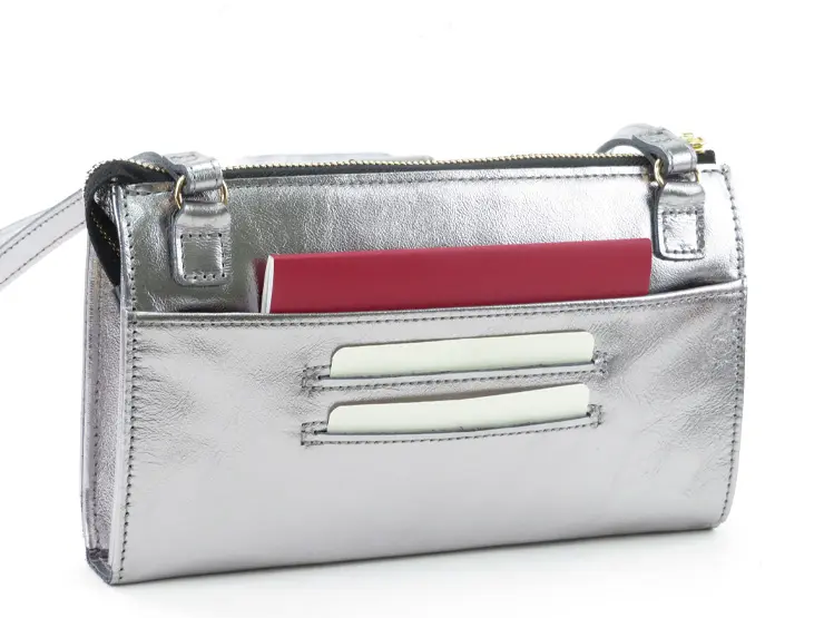 VIOLAd'ORO ヴィオラドーロ ADRIA メタリック 横型 スマホポシェット V-1338 SILVER