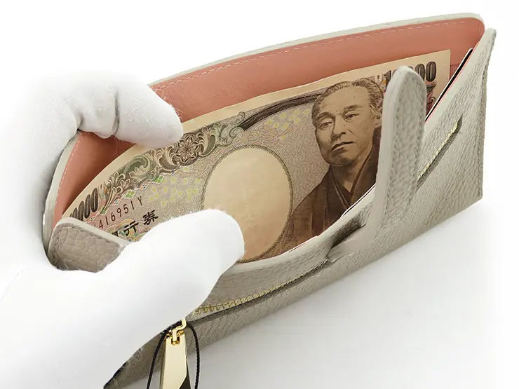 毎日手にするお財布は質感もポイント。マットでシボを効かせた牛革は上質感漂い、ソフトな手触りです。
