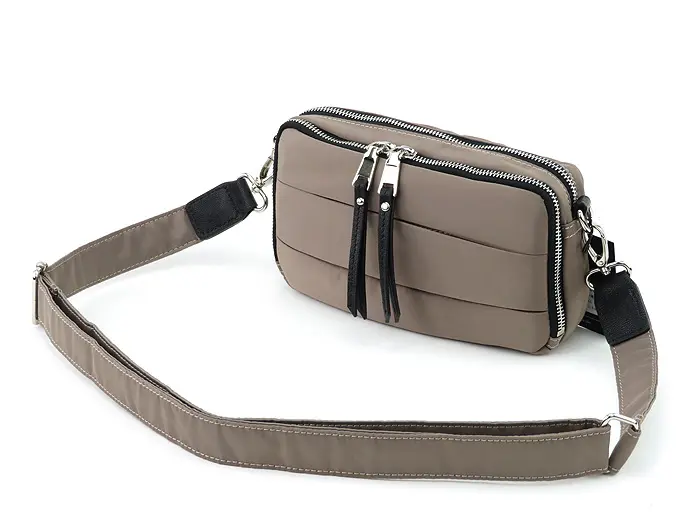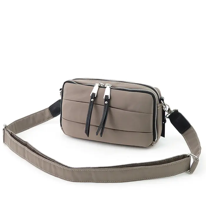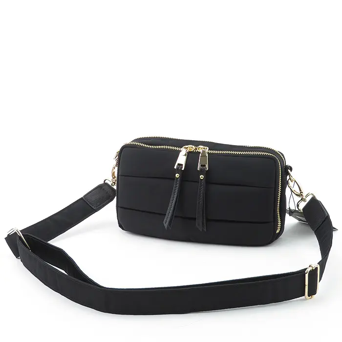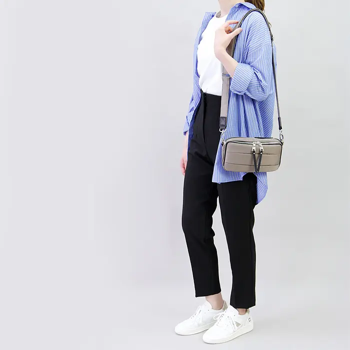 本体素材はナイロン100%。雨の日も安心してお持ちいただけます。ほんのり光沢感があり金具との組み合わせで上品に仕上がっているので、カジュアルもきれいめも相性抜群です。
