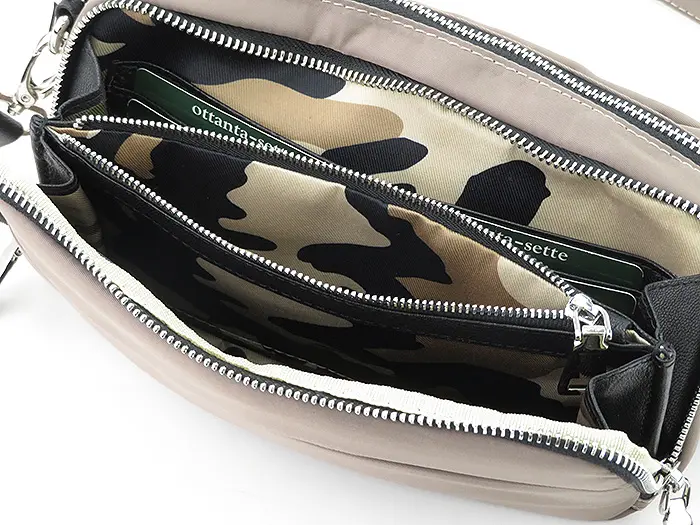裏地はカモフラージュ柄。バッグを開けたときにちらっと覗くカモフラ柄がお洒落です。