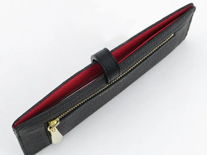 カード収納6か所、オープンポケット2ヶ所と仕分けもしやすい仕様です。裏地はポリエステル素材を使用することで、軽量化も考えられたデザインになっています。