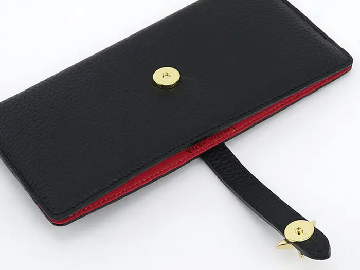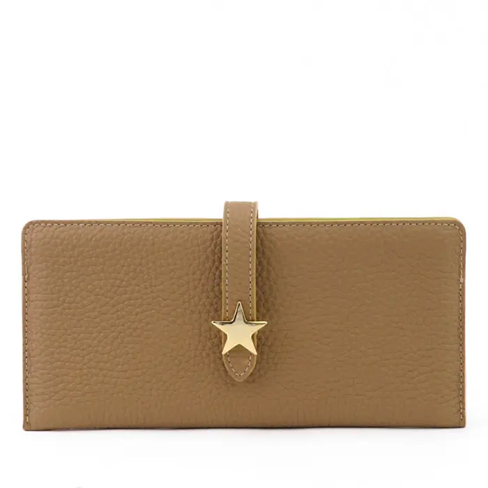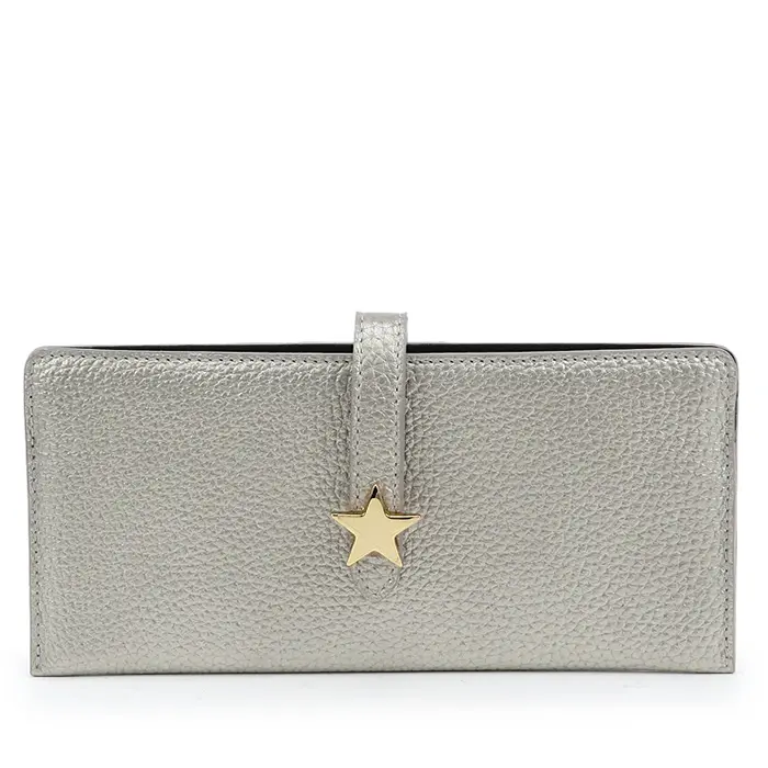 マットでシボを効かせた牛革は上質感漂い、ソフトな手触りです。内側には表とは異なった色を使われた、お洒落なバイカラーデザイン。フロントの星型のゴールド金具がシンプルなお財布に可愛さと上品さをプラスしてくれます。