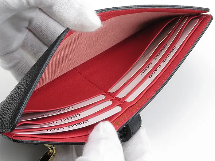 カード収納6か所、オープンポケット2ヶ所と仕分けもしやすい仕様です。裏地はポリエステル素材を使用することで、軽量化も考えられたデザインになっています。