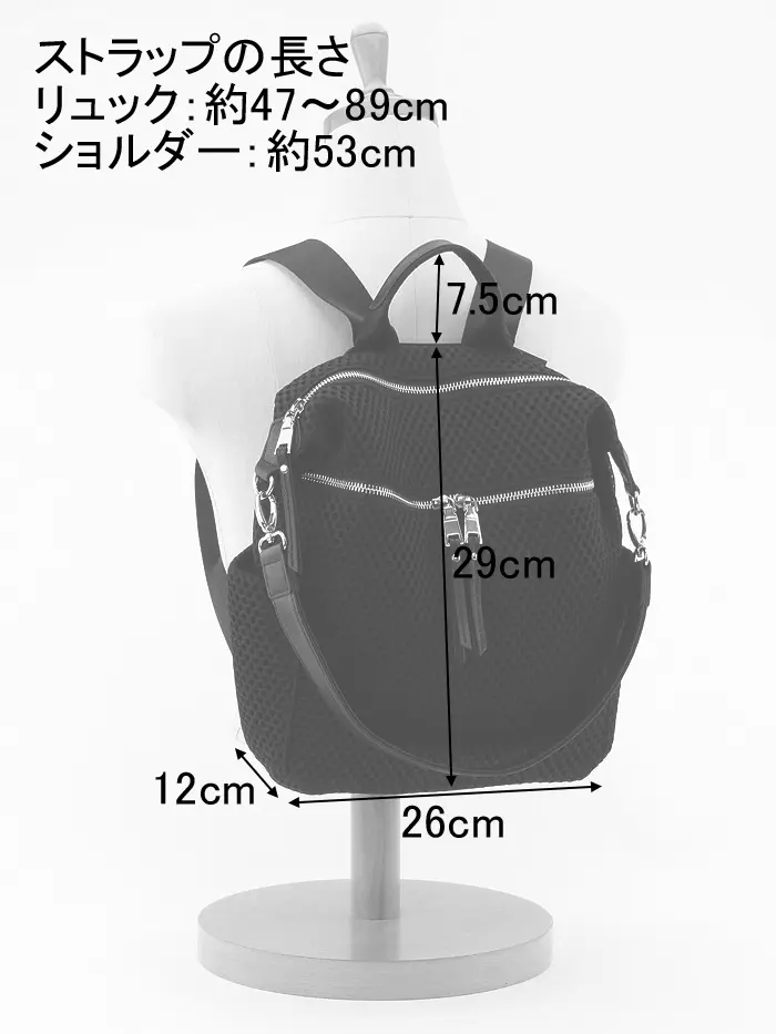 取り外し可能なストラップが付いた2way仕様のリュック。アクティブな日はリュックで、さっと持ちたいときはショルダーバッグで。コーディネートやシーンに合わせて使い分けれる便利なデザインです。リュックのストラップは太めで肩に負担がかかりにくく、滑りが良いのでスムーズに長さ調節が行なえます。背面にはICカードが入るカードポケット付きです。