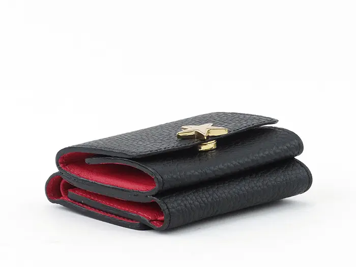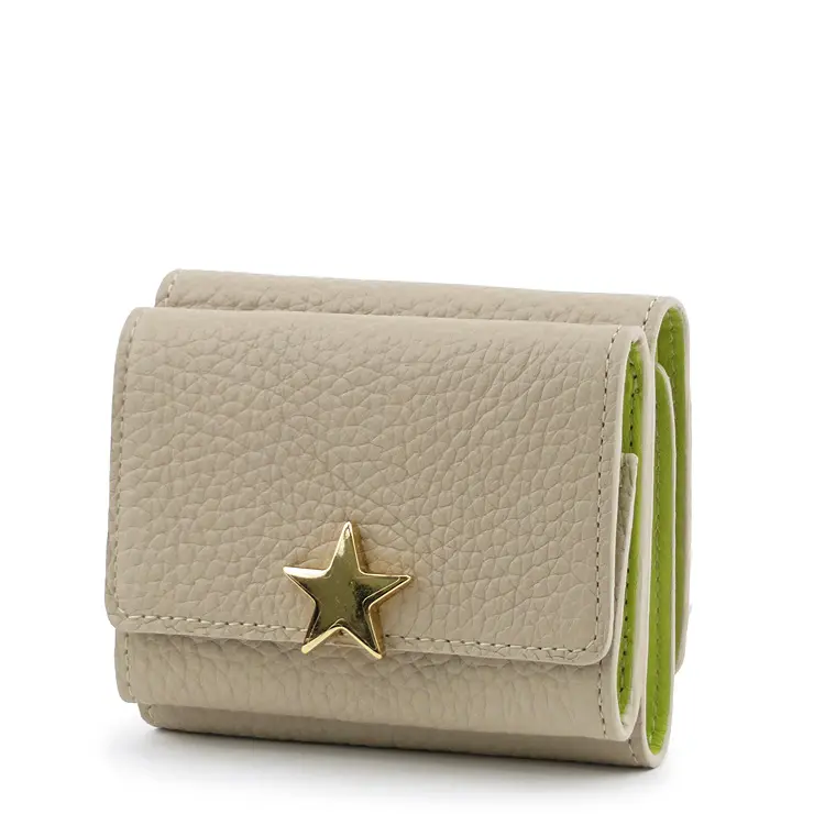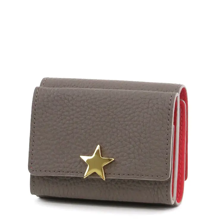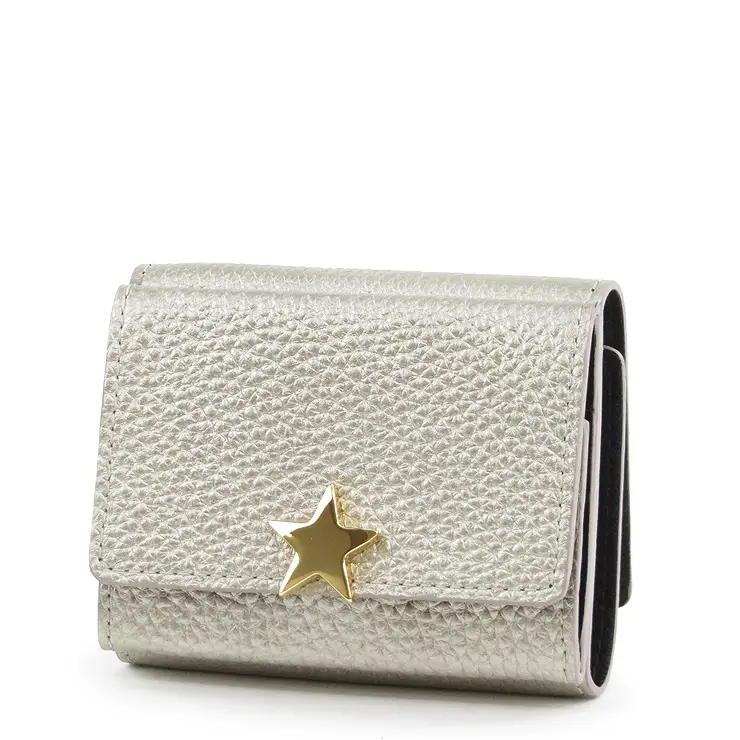 上質感漂うシボの効いた牛革は、柔らかく手触り抜群で手馴染み◎ ゴールドのスターモチーフがシンプルなお財布に可愛さと上品さをプラスしてくれます。