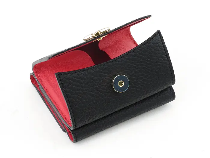 正面には小銭入れがあります。ワンタッチで開くマグネット開閉。大きく開くボックス型なので、小銭が見やすく取り出しやすいので、支払いもスムーズに行えます。