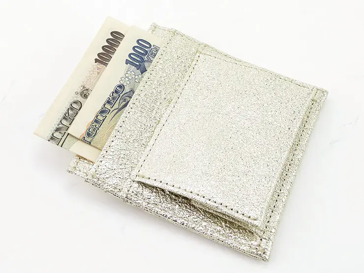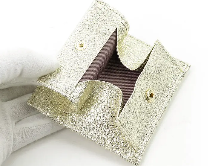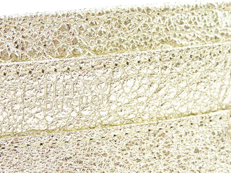 上品に煌めくメタリックレザーは柔らかな山羊革を使用しています。シワ加工により輝きが増し、品のある華やかさがあります。断裁から縫製、仕上げまで職人が一点一点丁寧に作り上げるこだわりの日本製です。