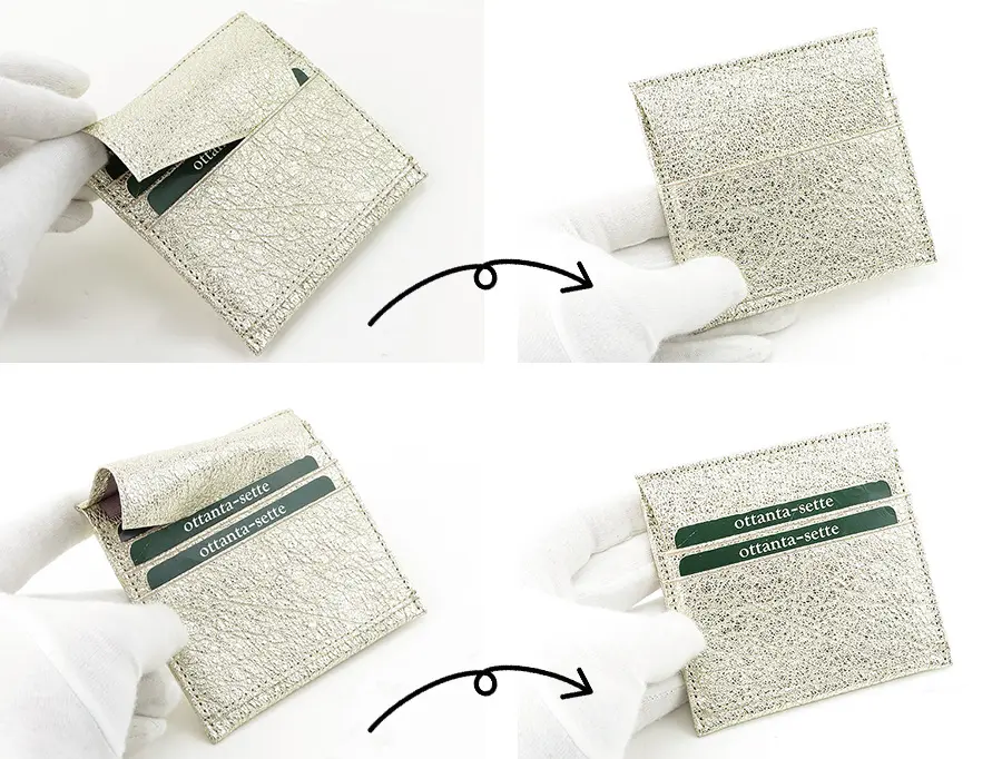 INTRO DUCTION イントロダクション メタリックレザー 極薄 ミニ財布 シルバー