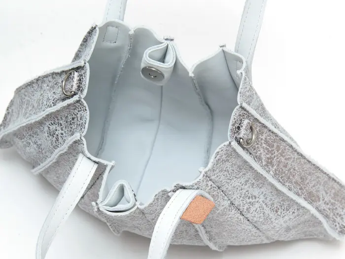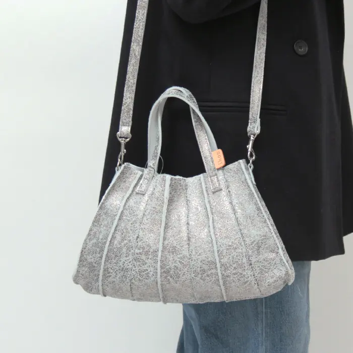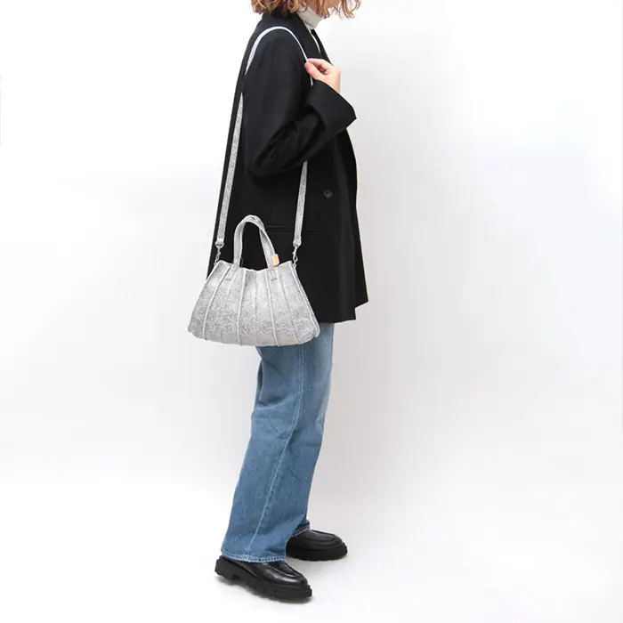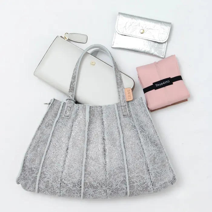 ikot イコット クラッキングレザー 2way ミニ トートバッグ SILVER