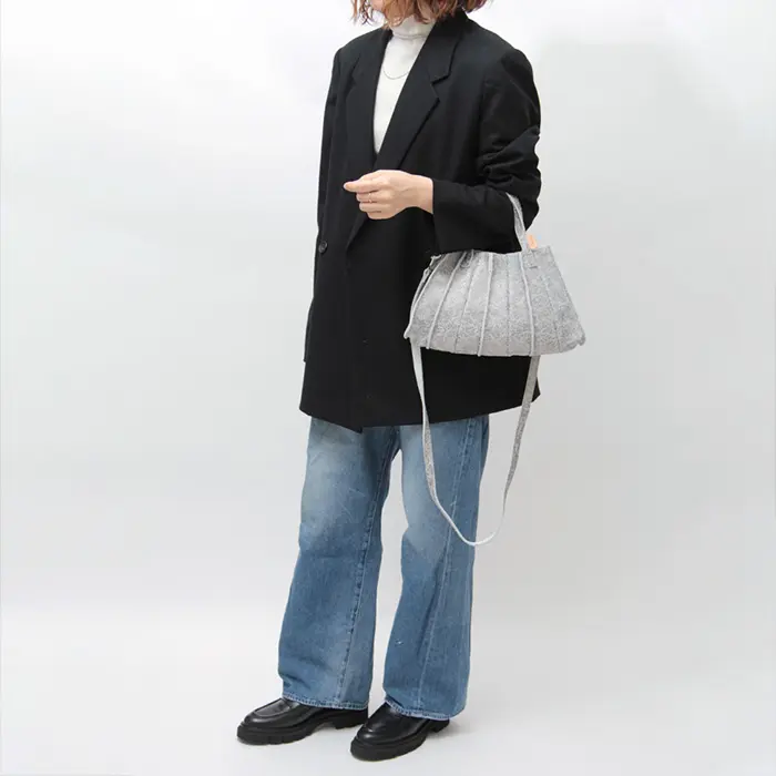 長財布、エコバッグ、ミニポーチなどの必需品が収まるサイズ感。開閉はマグネット付き。裏地の無い仕様なので軽い持ち心地で、革本来の柔らかさを楽しめる仕上がり。