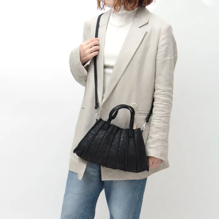 ikot イコット クラッキングレザー 2way ミニ トートバッグ BLACK