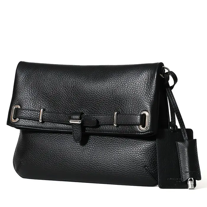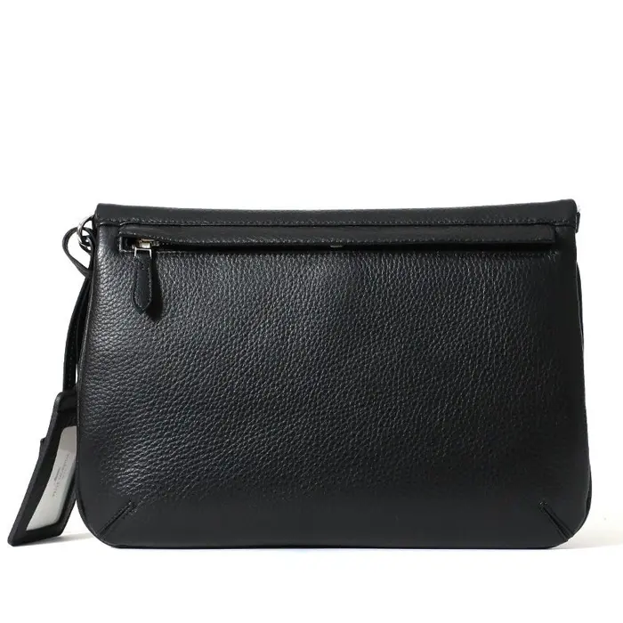 オールレザー仕上げの上品なクラッチバッグ。ベルトデザインが程よいアクセントになり、カジュアルから軽いフォーマルシーンまで幅広く活躍します。