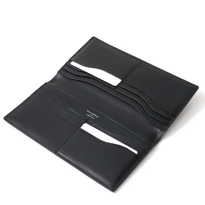 カードが芯代わりになるよう可能な限り薄く柔らかくデザインされているため、スーツの胸ポケットに入れてもすっきり収まるようになっています。内装は札ポケット2つ、カードポケット8つでたっぷり収納できます。