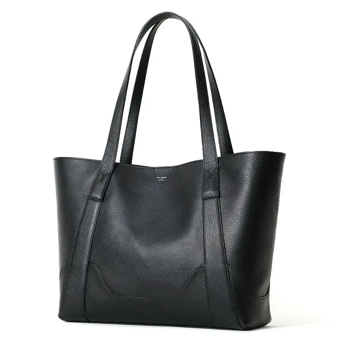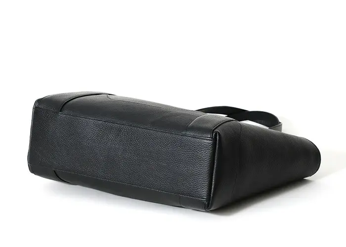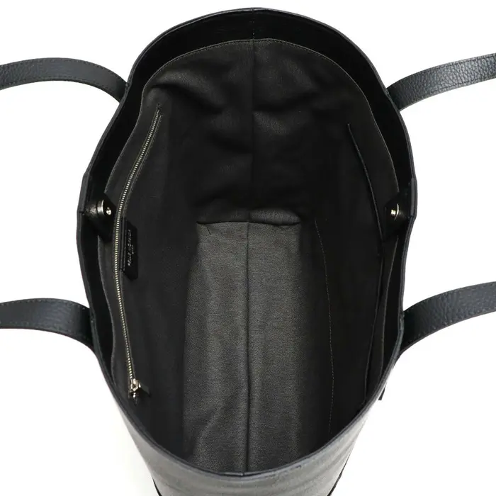 開閉はマグネット仕様。Mサイズのシンプルトートは、PCや書類が収納可能なAサイズで、普段使いにピッタリです。また撥水レザーを用いているので水を弾き雨の日でも安心です。背胴面には、オープンポケットがあり小物の収納に便利など機能性にも優れています。
