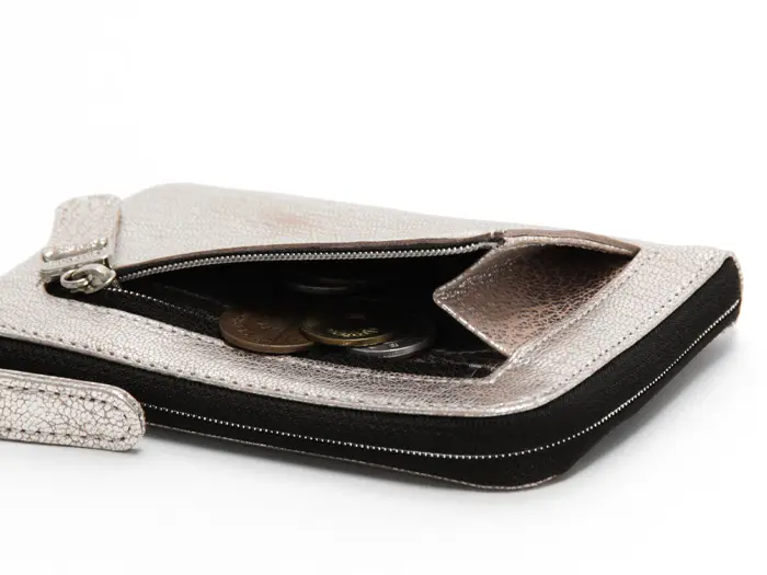 VIA DOAN ヴィアドアン Zilda L字ファスナー ミニ財布 シルバー