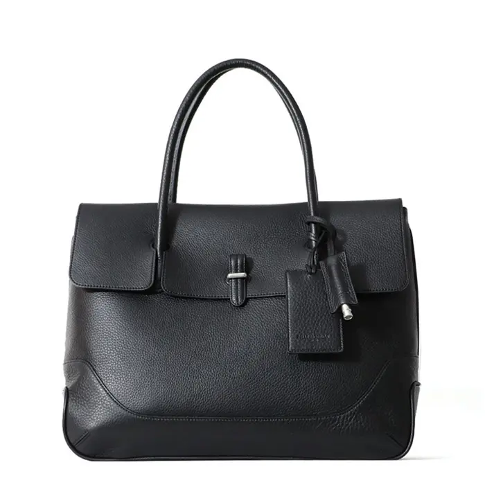 シンプルでシックなシリーズ"Maiden Voyage メイデン ボヤージュ"の大きめレザートート。フラップタイプの開閉口や繊細で細めのハンドルがユニセックスな雰囲気を演出していて、キレイめなスタイルによく似合う一品です。