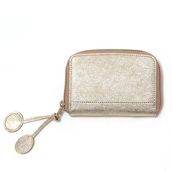 メタリックレザーの華やかなカラーリングが楽しめる"vagrie ヴァグリエ"のサンディオールシリーズ。細やかな煌きと落ち着いたメタリックカラーのカードケースは、女性の手にも収まるコンパクトなサイズ感ながら、カードはもちろん、小銭やお札、鍵まですっきり収まる優秀アイテム。洗練されたシンプルなデザインで、時代に左右されることなくタイムレスに愛せる逸品です。デイリーからパーティーシーンまで様々なシーンで活躍します。