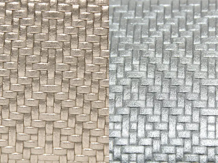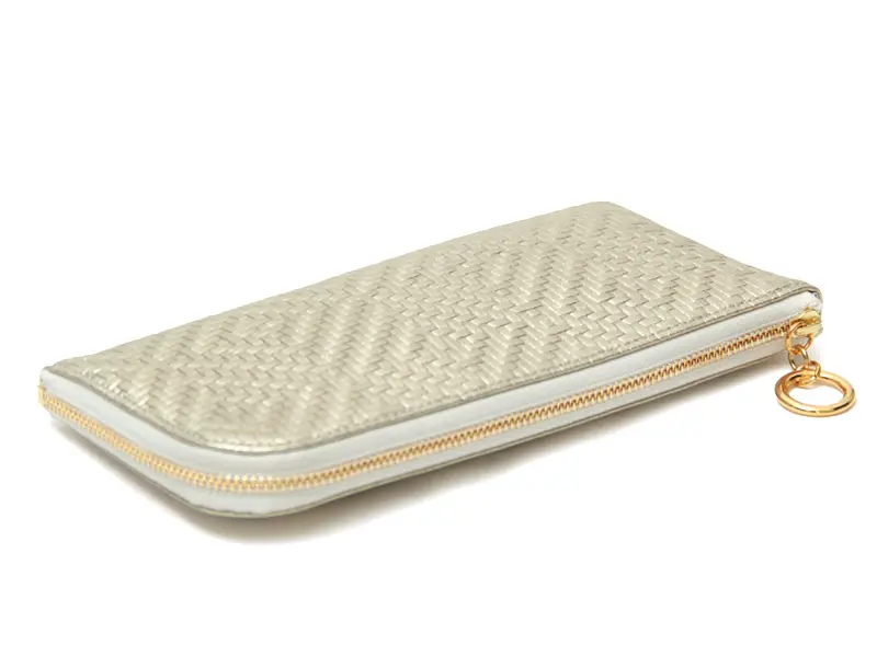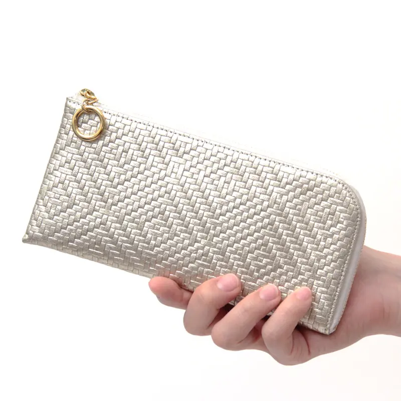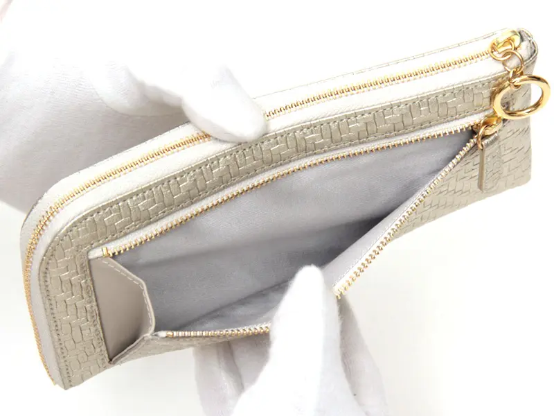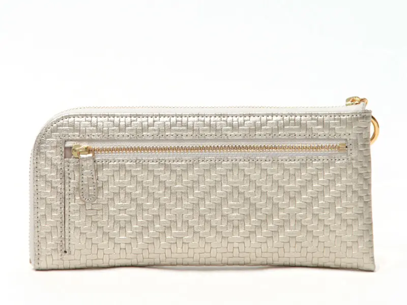 織物をイメージして作られた立体感のある細やかな模様のメッシュ型押しレザーは日本で丁寧に仕立てられています。触り心地がとてもソフトで柔らかく、女性の小さな手にも馴染みやすい素材感です。