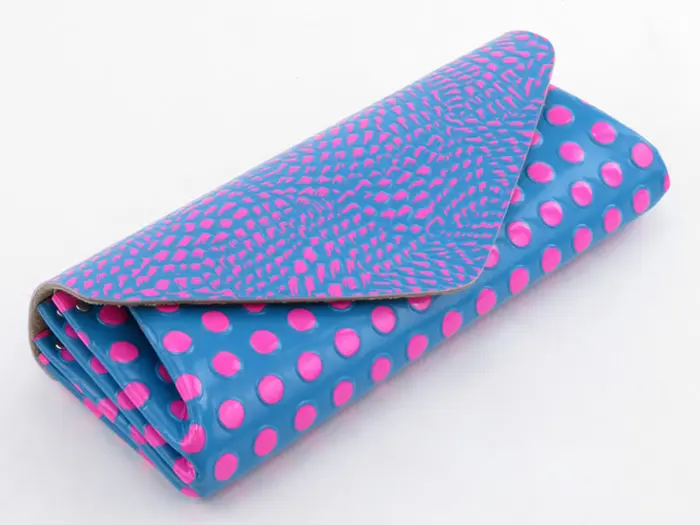 「Enjoy Accessory!」をコンセプトに、アートでキュートなアイテムを展開するMADE IN JAPAN のブランド"carmine カーマイン"。カラフルでビビッドなドット柄がとっても可愛いバードネオンカラーシリーズ。エナメル風のコーティング加工により、お洒落な見た目だけでなく、傷や汚れに強くなっています。シンプルな作りでたっぷり収納でき、使い心地も抜群。バッグから取り出すたびにハッピーな気分にしてくれます。