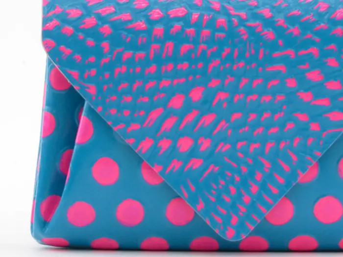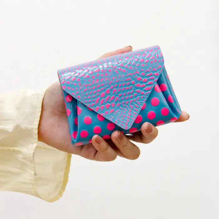 「Enjoy Accessory!」をコンセプトに、アートでキュートなアイテムを展開するMADE IN JAPAN のブランド"carmine カーマイン"。カラフルでビビッドなドット柄がとっても可愛いバードネオンカラーシリーズ。エナメル風のコーティング加工により、お洒落な見た目だけでなく、傷や汚れに強くなっています。シンプルな作りでたっぷり収納でき、使い心地も抜群。バッグから取り出すたびにハッピーな気分にしてくれます。