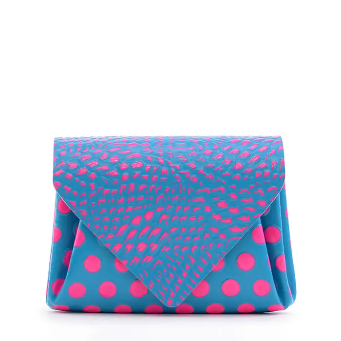 「Enjoy Accessory!」をコンセプトに、アートでキュートなアイテムを展開するMADE IN JAPAN のブランド"carmine カーマイン"。カラフルでビビッドなドット柄がとっても可愛いバードネオンカラーシリーズ。エナメル風のコーティング加工により、お洒落な見た目だけでなく、傷や汚れに強くなっています。シンプルな作りでたっぷり収納でき、使い心地も抜群。バッグから取り出すたびにハッピーな気分にしてくれます。