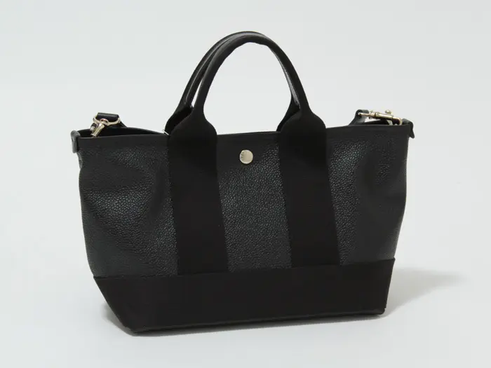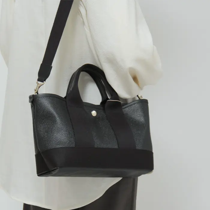 TOPKAPI/トプカピのロングセラー、SCOTCH GRAIN(スコッチグレイン)のトートバッグ。レザーライクな素材にハンドルがアクセントを効かすシンプルなデザイン。2way仕様で斜めがけでき、毎日の必需品が収まるミニサイズはデイリーバッグに最適。きれいめにもカジュアルにもマッチするので、オンオフお使いいただけます。フェイクレザーなので、水や汚れに強く、雨の日も安心してお持ちいただけます。材料から縫製まですべて日本製にこだわったバックです。