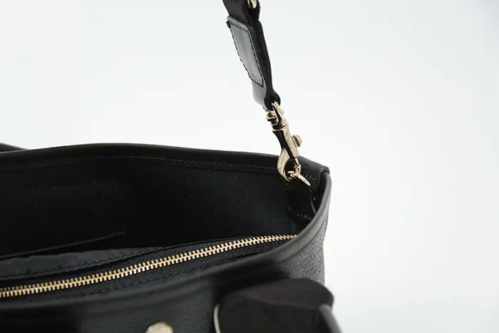 ストラップをつなぐDカンが内側に施されているので、ストラップを外したときもすっきりとお持ちいただけます。