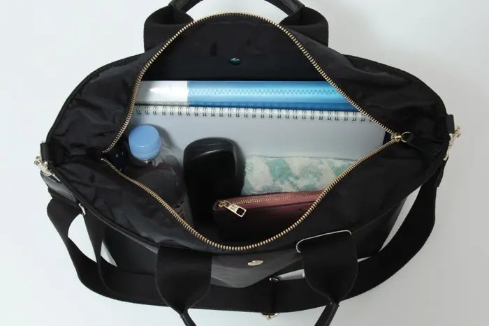 A4サイズが収まる大きさなので、通勤・通学にも嬉しいサイズ。ペットボトルや折り畳み傘、ちょっとした着替えなども収まる大容量で、マザーズバッグにもおすすめです。内ポケット付きで、鍵やパスケースなどの小物も整理して収納できます。