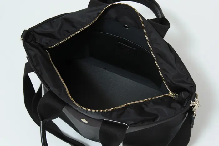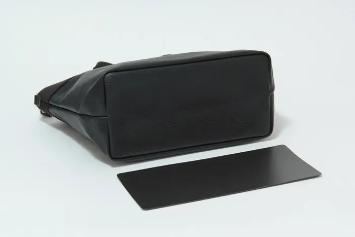 底板が付いているので、荷物を入れても型くずれしにくく、いつでもきれいなシルエットでお持ちいただけます。また鞄を置いたときも安定感があります。。