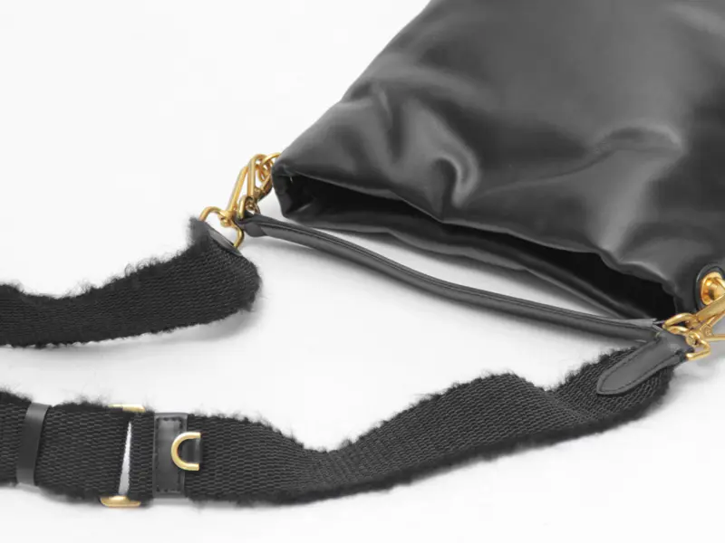 滑らかで、柔らかい肌触りのモヘア素材のショルダーストラップが、秋冬らしさを演出します。幅が4cmと幅広タイプで、肩への負担がかかりにくく、長時間の使用でも痛くなりにくい仕様です。