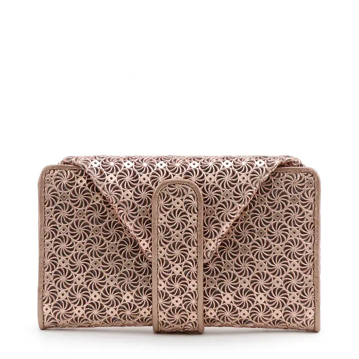 イタリア語で向日葵を意味する"GIRASOLE ジラソーレ"。牛革に型押しと型抜きを行った立体感のある素材感とメタリックの独特なカラーリングが特徴。個性的で品がありエレガントな雰囲気がとても魅力的です。リピーターの方も多く、男女兼用デザインなので大切な方へのプレゼントや自分へのご褒美にオススメです。
