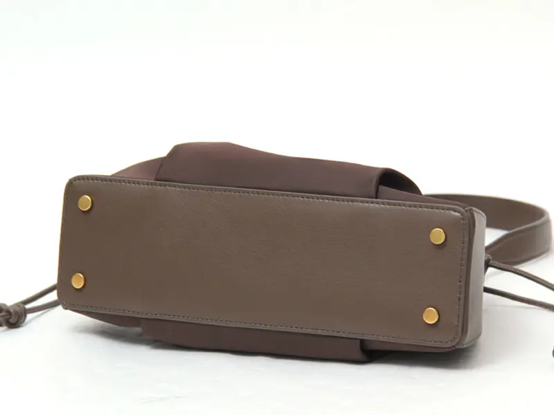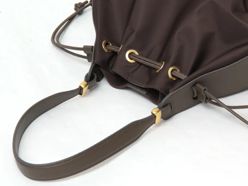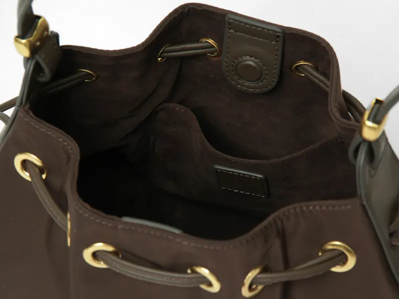 本体には、控えめな光沢が美しいナイロンと、柔らかく滑らかな牛革を使用。キメ細かいスムースレザーはマットな質感で、上品で落ち着いた雰囲気。コーディネートをぐっと引き締めてくれる存在感です。