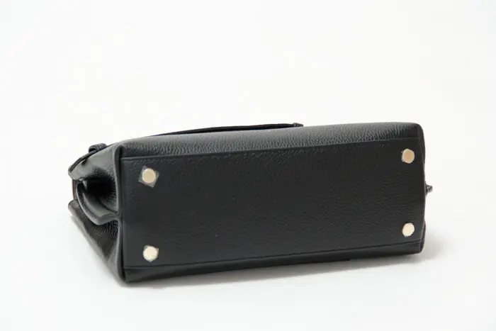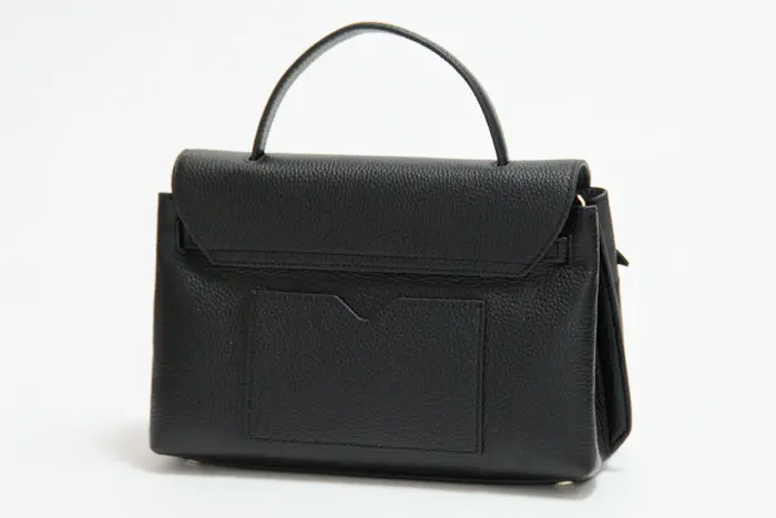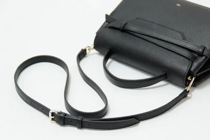光沢を抑えたサラッとした質感でシボの効いた牛革は上質感が漂います。正面にあしらったクロスリボンは甘すぎず女性らしい印象をプラスしてくれます。