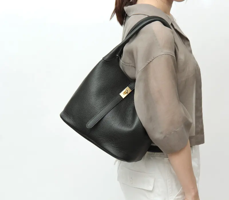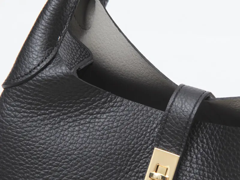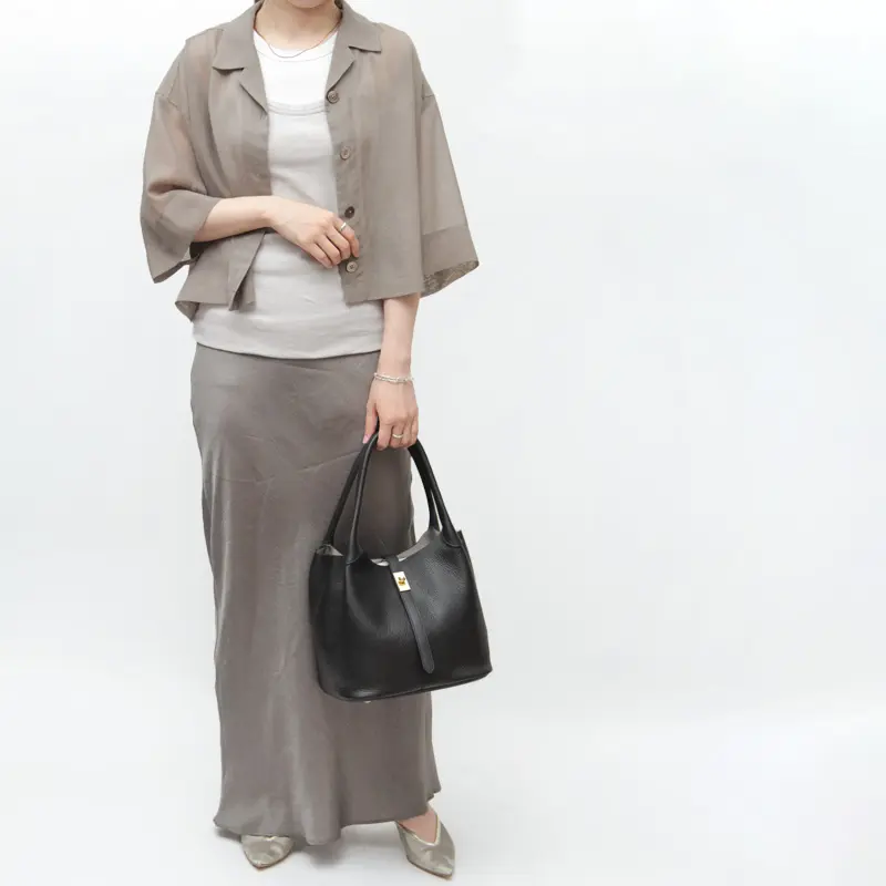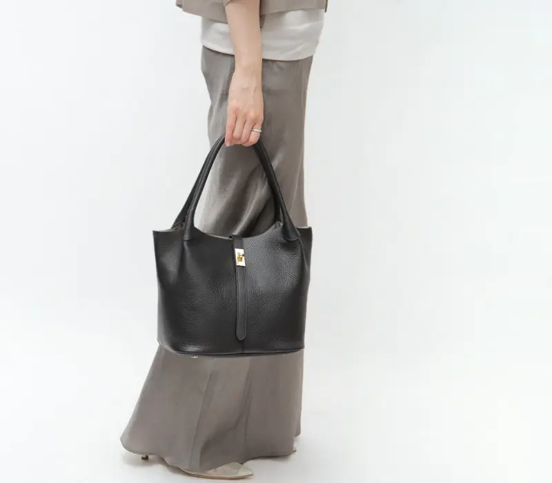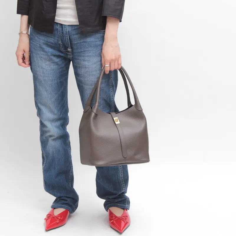 柔らかな質感とゴールド金具が目を惹く