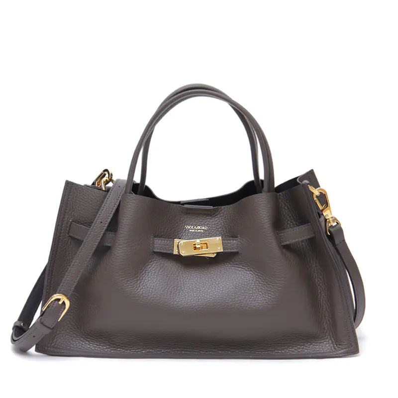 VIOLAd'ORO ヴィオラドーロ TRERO イタリアンWフェイスレザー トートバッグ (横長) ダークトープ