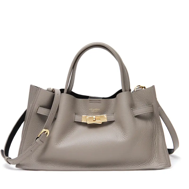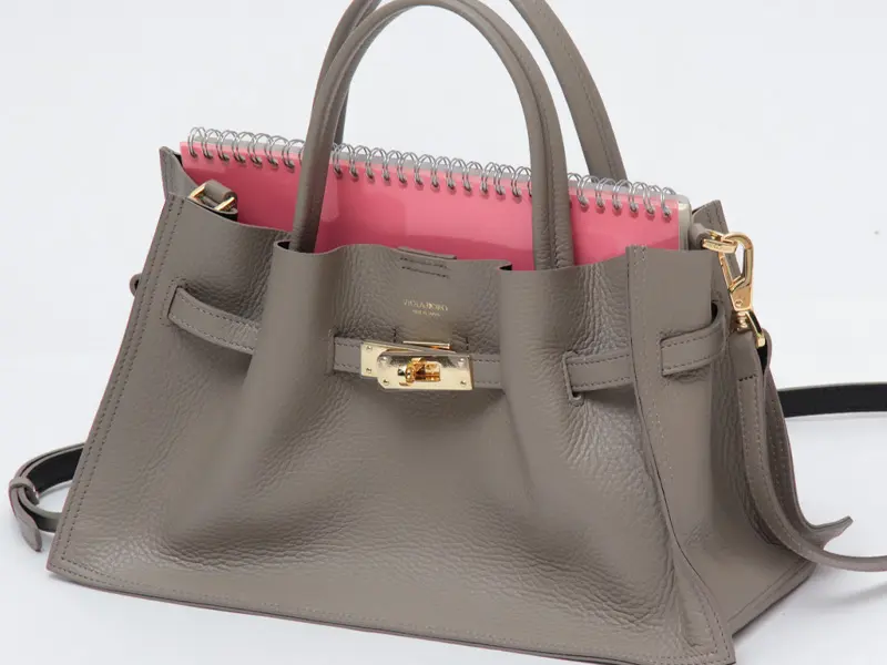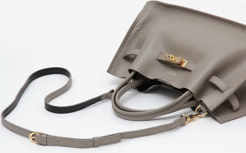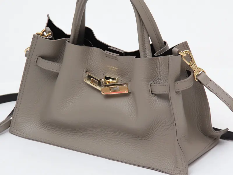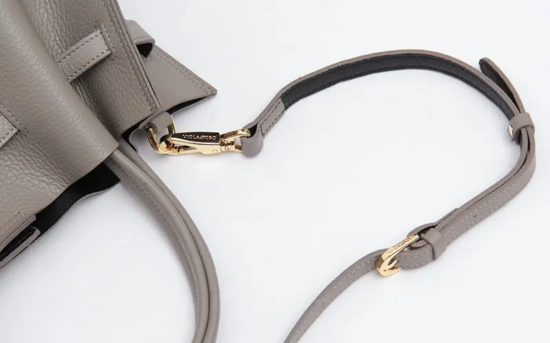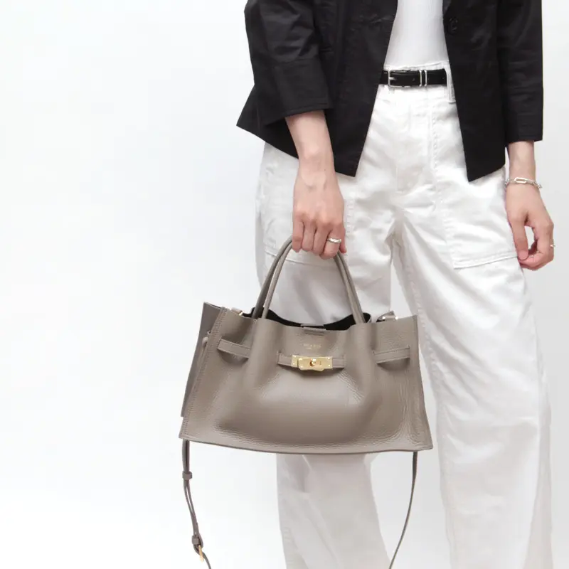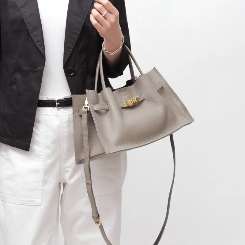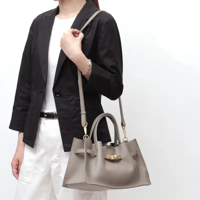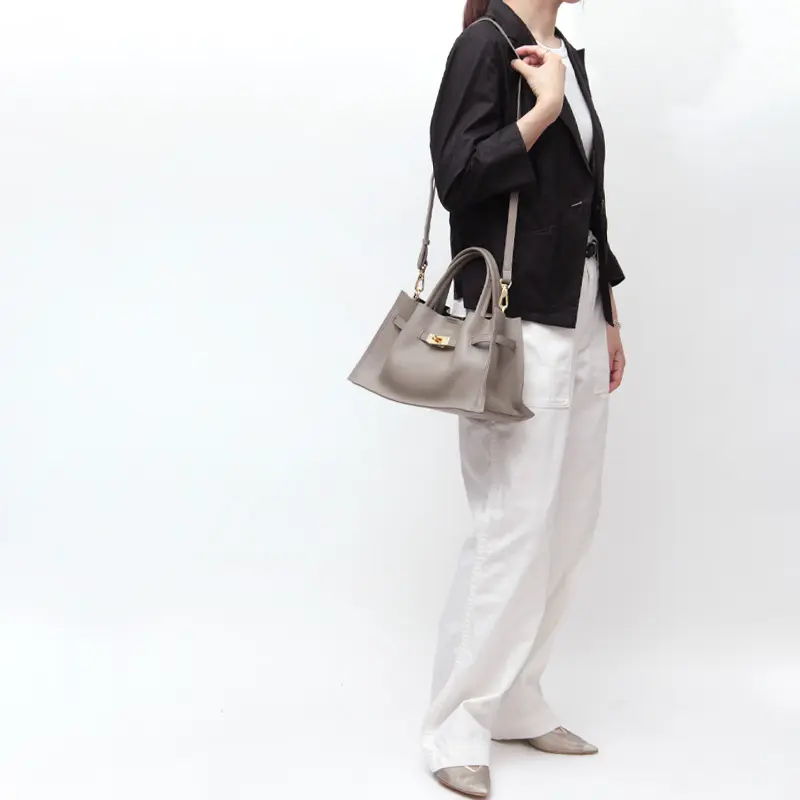 柔らかな質感とゴールド金具が目を惹く