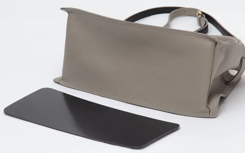 広めのマチが安定感を生み、置いたときに倒れにくく見た目もスマート。底板付きの設計で、荷物を入れても型崩れしにくく、美しいフォルムをキープします。