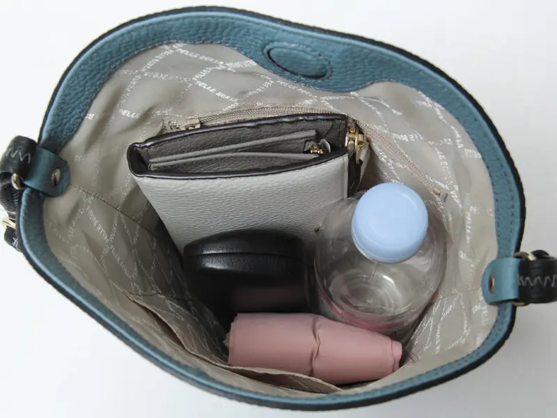 長財布やペットボトルを縦に収納できるサイズ感です。お出かけに必要なアイテムがしっかりと入り、これひとつで身軽に外出できる実用的なサイズ感です。 コンパクトに見えて、想像以上に頼れる―そんな嬉しいバランスが魅力です。