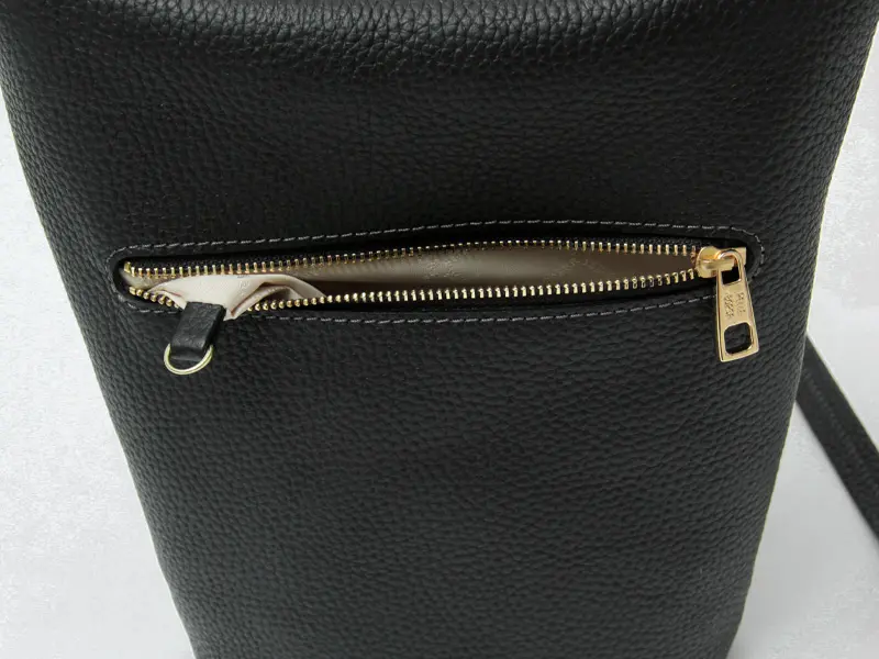 背面内側にはファスナーポケットが備わっており、財布や鍵など大切なものの収納に最適です。開閉もスムーズで、安心感があります。