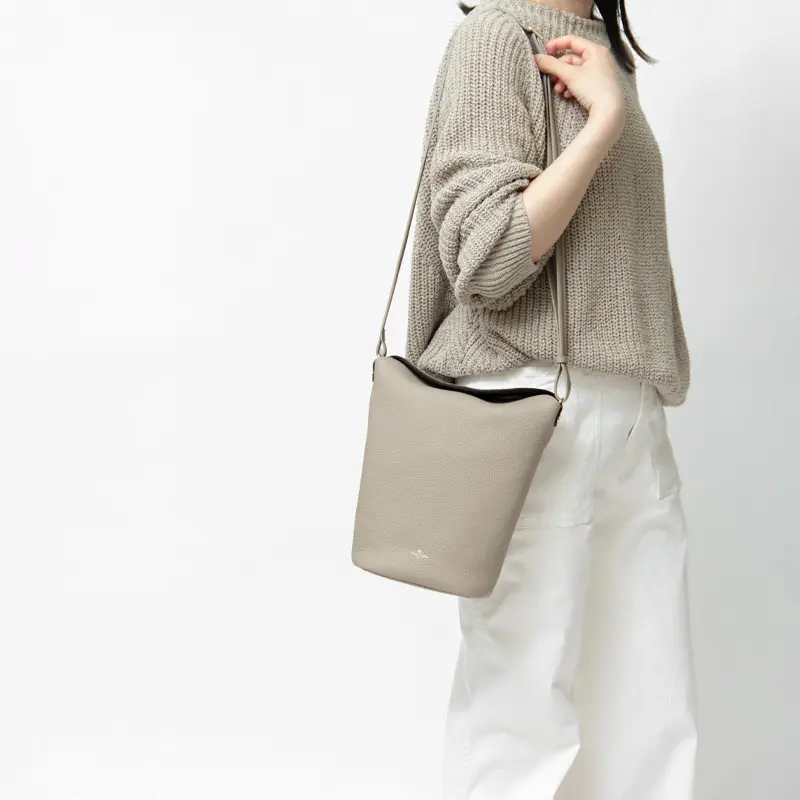 ソフトな質感のレザーを使用した、人気シリーズreinette(レネット)の縦型ショルダーバッグ。上質な牛革(型押しシュリンク)を使用し、縦長のデザインは、持つ人のスタイルアップ効果が期待できます。シンプルながら洗練された美しさが特徴の一品です。