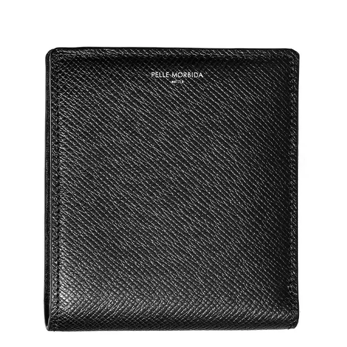 PELLE MORBIDA ペッレモルビダ Barca 型押し牛革 コンパクトウォレット ブラック