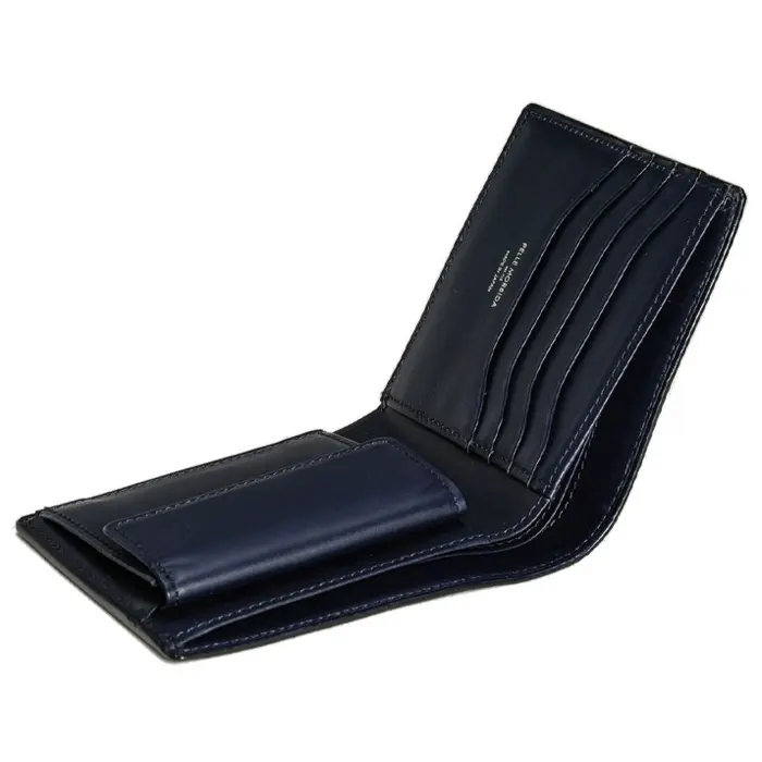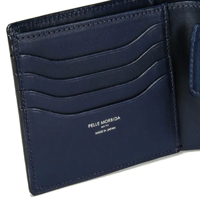 PELLE MORBIDA ペッレモルビダ Barca 型押し牛革 コンパクトウォレット ネイビー