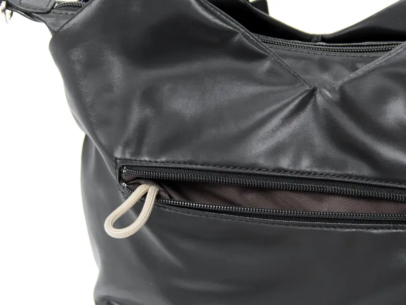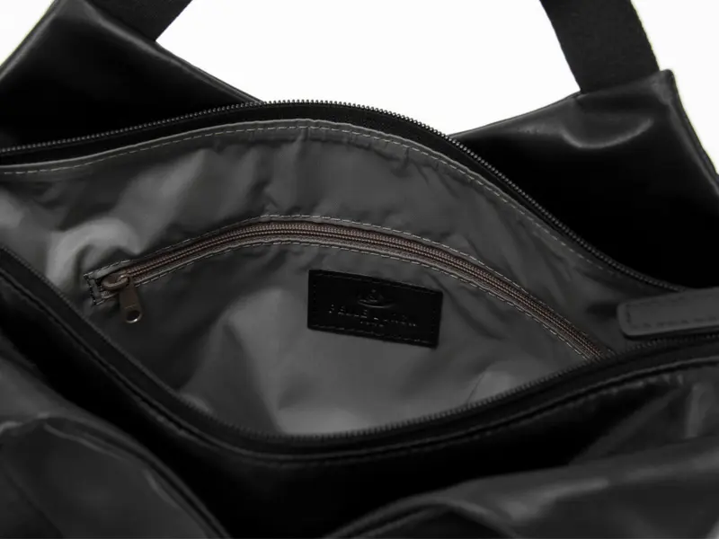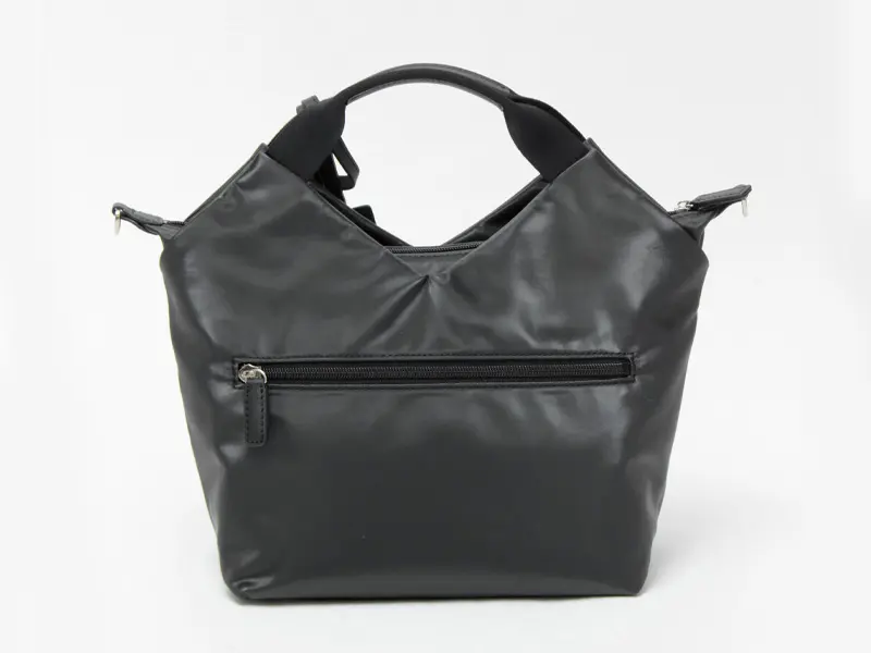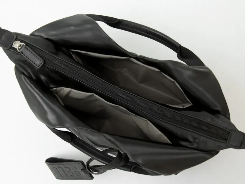 開閉は防犯面も心強いファスナー仕様を採用。バッグ背面の内側には、貴重品専用のファスナーポケットを完備しており、他の荷物と分けて管理できる高い利便性が魅力です。