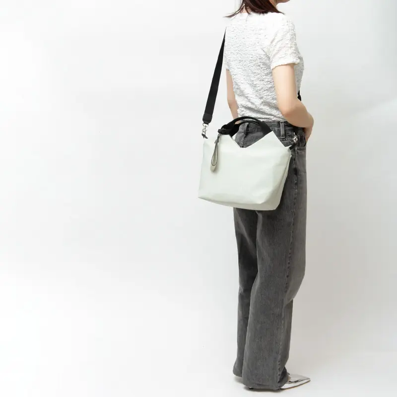 本体はエレガントなくり手デザインで、手持ちのハンドバッグとしてスタイリッシュにお持ちいただけます。取り外し可能なショルダーストラップをつければ2way仕様に。アクティブな日のお出かけも、カジュアルかつ軽快に楽しめます。