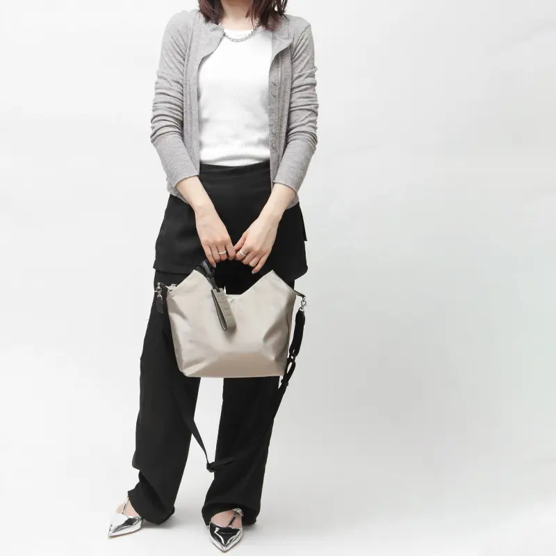 軽量でふんわりとした扱いやすい素材に機能性をプラスした、「チアーズ」シリーズの2wayハンドバッグ。ショルダーストラップ付きでスタイルチェンジも自在。コンパクトな見た目以上の収納力があり、長財布や化粧ポーチなどの必需品をスムーズに出し入れできます。軽さと実用性で、あなたのデイリーユースに心地よく寄り添うアイテムです。