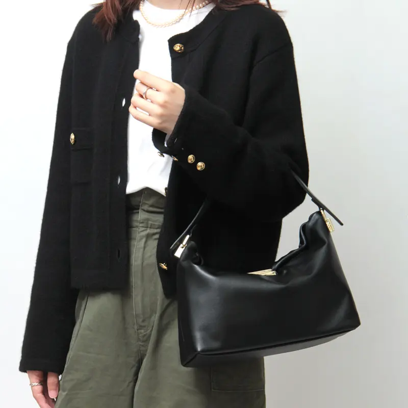 きめ細やかな上質の牛スムースレザーを贅沢に使用。しっとりと手に馴染みクッタリと柔らかな風合いが魅力です。ゴールドの金具がほどよい華やかさを添え、上品な手元を演出します。