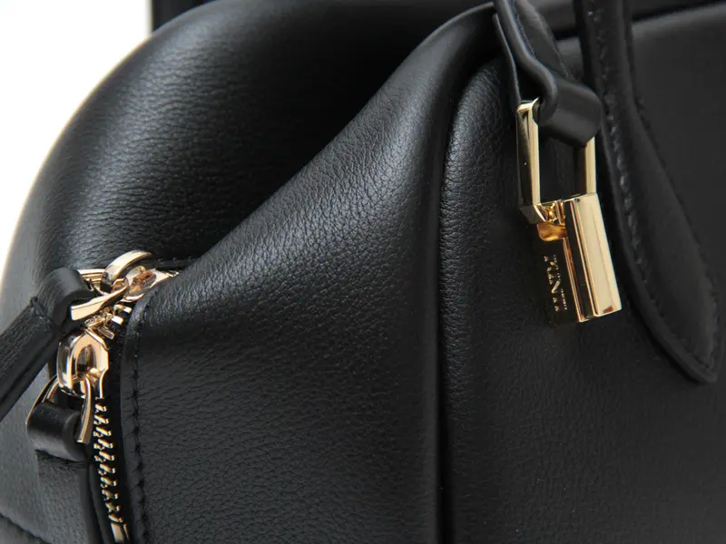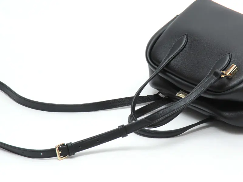 本体には小さなシボが特徴のレザーを使用。傷がつきにくく、柔らかなやかな手触りが特徴です。高級感ある豊かな表情と適度なハリで、型崩れしにくく長く愛用いただけます。使うほどに味わいを増す革の経年変化をお楽しみください。シンプルながらも高級感のあるレザーにゴールドの金具が上品な華やかさを添え、タイムレスなエレガンスを引き立てます。