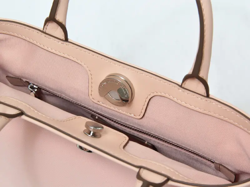 バッグの開閉部分は、マグネット式の差し込み金具を採用。金具を差し込みマグネットでカチッと止まる仕組みです。