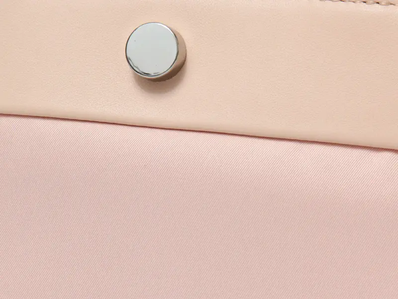 本体はリサイクルポリエステルを使用。耐久性・強度・伸縮性が高く、形状安定性に優れ、シワや型崩れを起こしにくいのが特徴です。サラサラとした心地よい肌触りで、撥水加工が施されているため、軽い汚れや水滴を弾き、突然の雨にも安心してお使いいただけます。